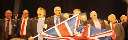 | On the Saturday evening is the Gala Dinner and the medal presentation with over 500 fanciers and partners attending the evening. This is unique to COM as fanciers attending from each country are called to the stage to be presented with their national flag while their national anthem is being played. This year we had about 20 British fanciers attending and we all went up to the stage. It is always so wonderful to be part of the family of nations sitting together and enjoying each others company. The speaker also announced the number of medals each country has won and it was announced that we, COM-UK, had won 9 medals consisting of 4 gold, 2 silver and 3 bronze medals, the same total number as last year. It is only natural that the host country tends to do well as Belgium had the largest team and of course the largest number of medals. |
