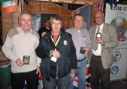 ![]() Medal winners Stan Bolton, Richard Lumley (COM-UK President), Brian Hogg & Ghalib Al-Nasser at COM-UK stand |