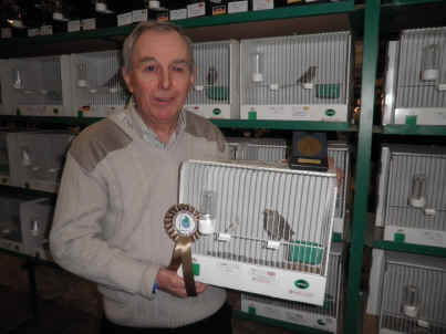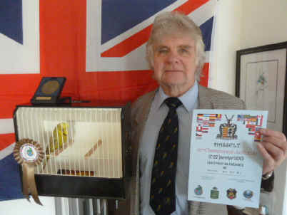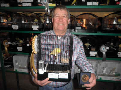 ![]() Stan Bolton with his bronze medal for Blue Lizard canary |